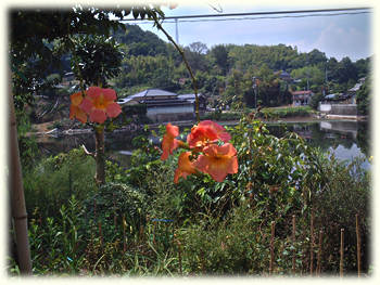 | 今日はとてもいいお天気です。絶好のお墓参り日より!朝起きるとお日様が痛いのです。おばあちゃんはもう朝の6時半からお墓に行ってきたそうなので、Kanaもおじいちゃんと一緒に高校野球の第一試合を見た後で、ぶらりと裏の山の上のお墓に参りに出かけたのでした。 |
