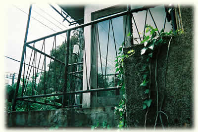 ここは、階段の街なので1階か2階か分からなくなりそうですが、目の前に2階のベランダです。よく見ると扉の枠はそのまま木製です。壁にはつたです。祈りをささげたあの日を思い出しますが・・・(このネタが分からない人はお母さんに聞いてみよう)。