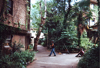 ここが31号館と32号館の前の入り口の玄関で、写っているカメラマンは保存写真を撮るプロの方だそうです。Kanaがこの写真気に入ってる理由がもう一つあって、唯一自分と、この団地が一緒のフレームに収まっている事、右の座っているのがアタクシなのです。
