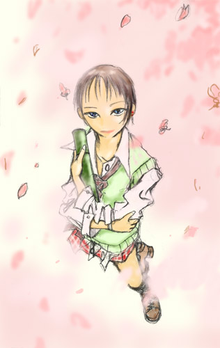 | 卒業式なのです。春なのです。卒業できない恋もあるのです(by misato)花のちるらむ、なのです。願わくば花の下にて春死なむ、そのきさららぎの望月の頃。(by西行法師)ねぇ、知っているかい?サクラの木の下には死体が埋まっているんだよ。サクラの花があんなにキレイなのは(梶井基次郎)だからさ、花坂爺さんが灰を巻くのも死体の灰なのさ。・・・サクラは幻想を抱かせますのです。 |