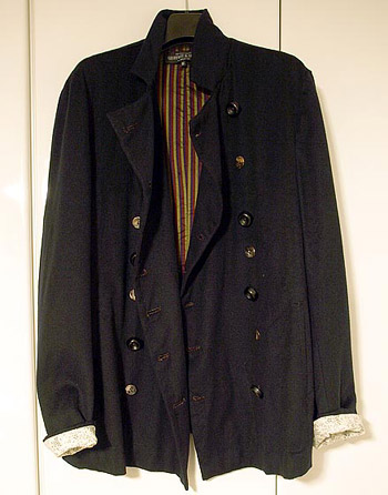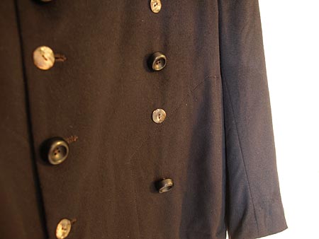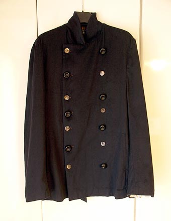 先週、代官山を人と散歩した時に、件のコートの話が出まして、面白いので見に行こうと言うことになりました。見に行って、せっかくだから試着してみました。これがちょっと大きめだけどボタンを留めてみるとぴったりなのですよ。そして、無骨さと繊細さの細部の良い感じのこと。