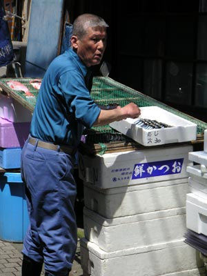 魚屋のおじさんが魚を干していました。アジのヒラキを江ノ島で作っているとは思いもしませんでした。