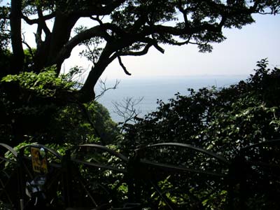 江ノ島にはエスカーという有料のエスカレーターがあって、(それが3台も4台もあって人々にお金をはらわせつつ山の上に誘うのだけれども) 仲見世どおりを神社に突き当たったら左側にあるエスカーとは反対、右の小さな階段を上がってゆくと、穏やかな坂が続いていて山の上まで連れて行ってくれます。眺めも西向きだから、お天気がよいと富士山のほうも見えるよ。知ってた?