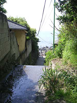 写真は仲見世どおりを右に折れてしばらく路地を歩いてみたところ、海岸が見えて江ノ島で海を海らしく感じられる。(だって、江ノ島って海というより江ノ島なんだもの)
