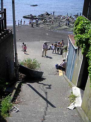 江ノ島の海岸に下りる方法はいくつもあるのだろうけれどもKanaが使うのは2つ