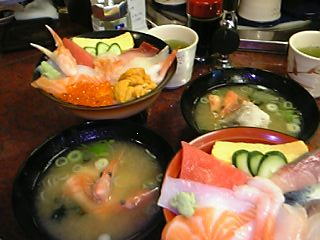 | 兼六園はやはり日本三大庭園の一つとあって壮大ですねぇ。しかも広い広い。手入れもしっかりされていてさすがという感じです。 ラッキーは入り口までです(^_^;)ペットは禁止なので・・・残念。 そして金沢21世紀美術館へ。前面ガラス張りの円形の建物です。いく途中から雨がぽつりぽつり。夜からの雨の予報がが結構早く降ってしまいました(ーー;)そして現在公開されている2つの展覧会へ。芸術は爆発ですね。私達にはなかなか難しい芸術作品でした(^_^;) 美術館をでるとじゃじゃぶりです(T_T)どしゃぶりの中今度は近江町市場へ。 ここは金沢では有名な市場です。あいにくこの日は閉まってる店を多かったんですが普段はすごい活気溢れる市場のようです。しかし結構街の中にあるのには驚きました。コロッケ屋さんも有名みたいだったので食べて見たかったのですが閉まってました(ーー;) そして市場の中の今回の目玉。「井ノ弥」へ。場所がわからず店のおっちゃんに聞くと「今日は休みちゃうかな?」との事!場所は確認していってみるが、開いてたみたいだが終了の看板・・・(T_T) 仕方なく次のターゲット!「廻る近江町市場寿し」へ!ここも結構な行列です。 雨の中30分程まってやっと呼ばれました。店内はサイン色紙も一杯飾られていました。 このお店は回転寿司なんですがほとんど回っていません。注文対応みたいな感じです。僕らは「海鮮丼」を注文です。これを食したかったんです。 感想は、やはり新鮮でネタもはごたえあり脂ものっています。やはり日本海海の幸!旨かったっす(^^♪ 満足満足。 ![]() |