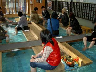 | 五木茶屋での足湯ですわ。一応天然温泉というやつです(^。^) ちなみに美浜は、五木ひろしの出身地なんすよね〜 |