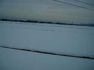 | 車中からの眺めは雪景色なんす。 | |